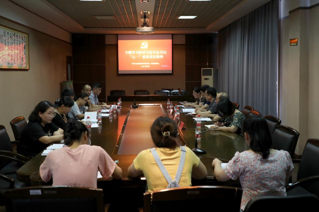 江科网讯(记者 何强江)9月1日下午,机关第一党支部在行政楼北411会议室专题学习研讨习近平总书记“七一”重要讲话精神。党委书记邓弘、总督学程样国以普通党员身份参加学习研讨。