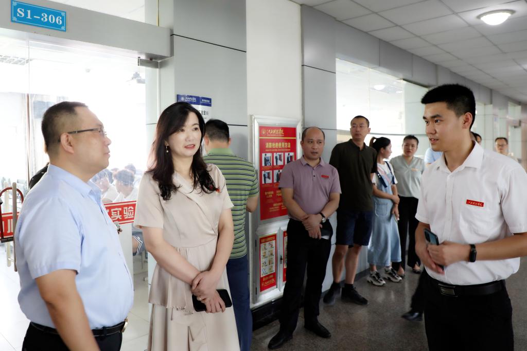 校长张海涛,副校长马勇、李玮、周冰冰等校领导先后深入现代教育技术中心(S1实训楼)、人工智能学院、信息工程学院、文化与传媒学院和教育学院,认真检查教学软硬件设施运行状况及教学安排、师生课堂上课状态、卫生防疫等情况。张海涛校长强调,要在疫情防控常态化大背景下,牢牢把握住开学关键期,牢记教书育人使命,教师不仅要培养学生主动获取知识的能力,更要培养学生的自律性;学生要主动遵守学校的各项规章制度,成长为全面发展的人才。马勇副校长要求各教学单位在新学期要进一步强化教师教学意识、规范课堂教学行为,切实提升教育教学质量。李玮副校长希望教师们以只争朝夕的精神扎实推进科研工作,在新学期争取新的更大成绩。周冰冰副校长希望各学院联合总务处筑牢后勤服务保障线,为师生营造干净卫生、安全舒适的教学环境。视察过程中,张海涛校长还以班主任身份前往所试点班级20本软件1班与同学们亲切交谈,了解同学们新学期首日的上课情况。她嘱咐同学们要尽快调整好状态,以饱满的精神状态投入到新学期的学习和生活中。