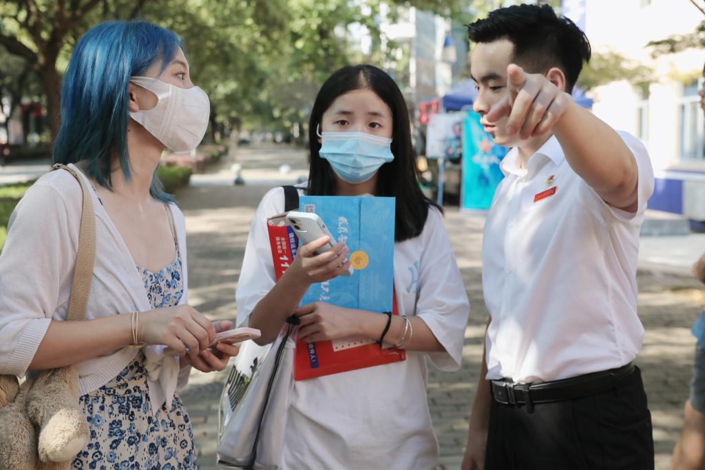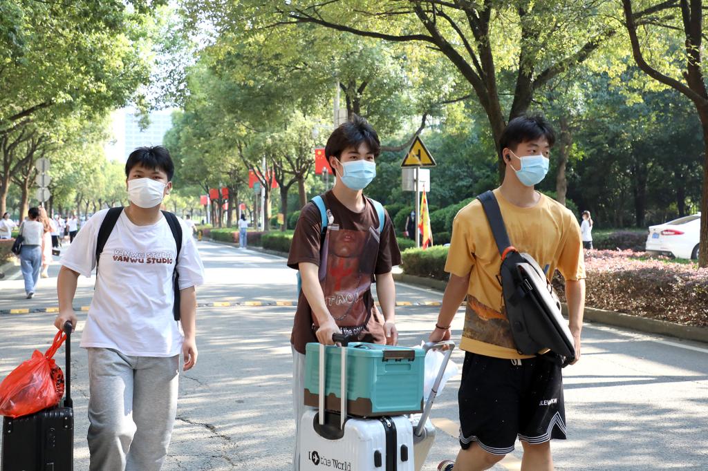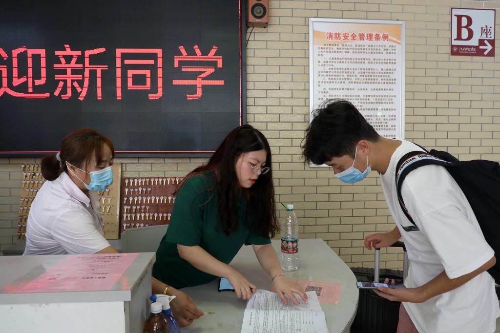 为做好严格落实疫情防控要求下的迎新工作,学校各部门各学院多方协同,推进信息化、人性化、便捷化服务,为新生办实事、解难题。“你好,同学!请带好口罩间隔一米排队。”“同学,请出示健康码和行程码。”随着声声提醒,新生们在志愿者的引导下,依次排队验证健康码、测量体温后有序进入校园。迎新现场,工作人员和志愿者帮助新生们搬运行李、引导大家前往学院报到注册和入住宿舍等。