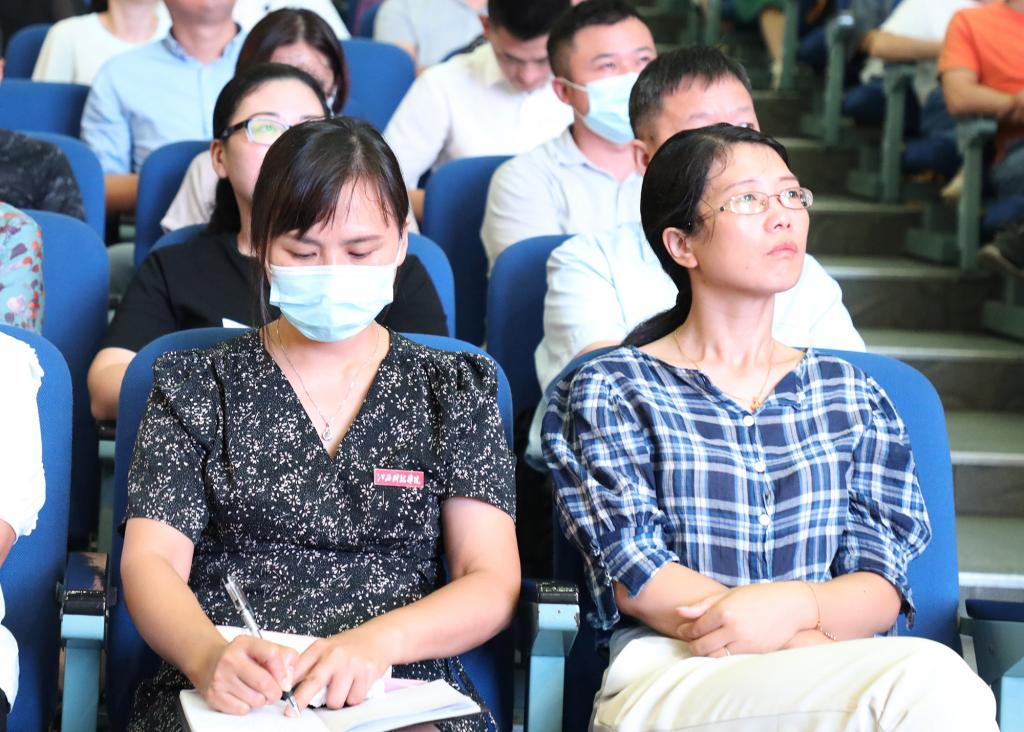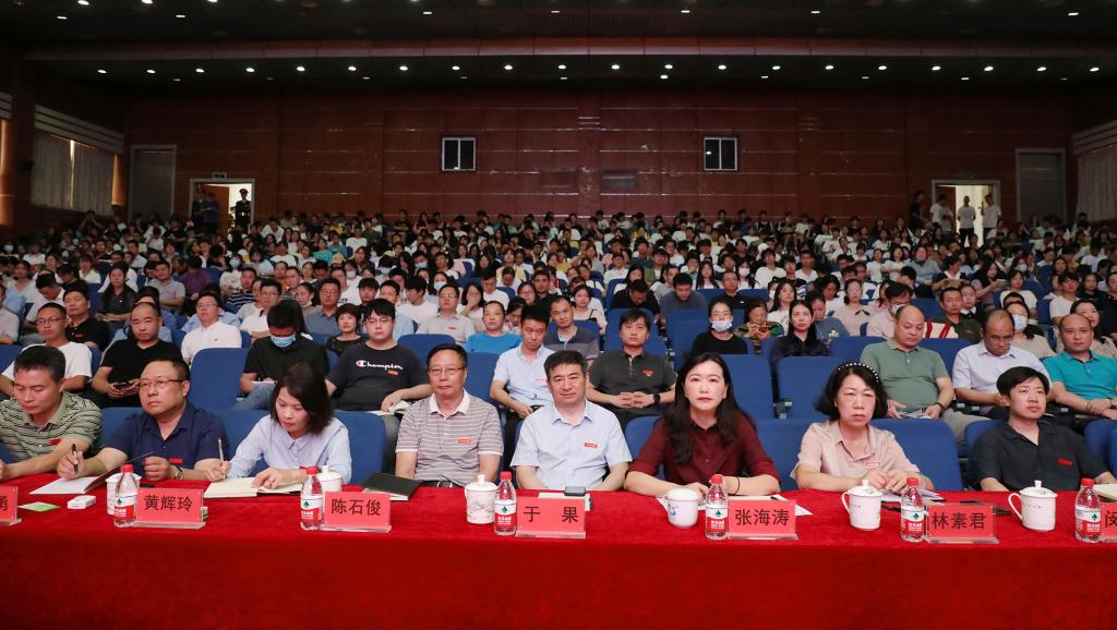 董事长于果,校长张海涛等全体在家校领导与全校科级以上干部,校(党)办、组织部、宣传部、统战部、人事处、学工处、科研处(学科办)、思政部及区域发展研究院全体工作人员,各学院专业负责人、辅导员、学生代表等700余人一道聆听了报告。报告会由张海涛校长主持。