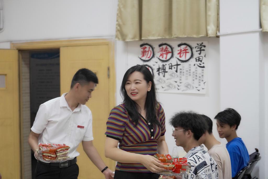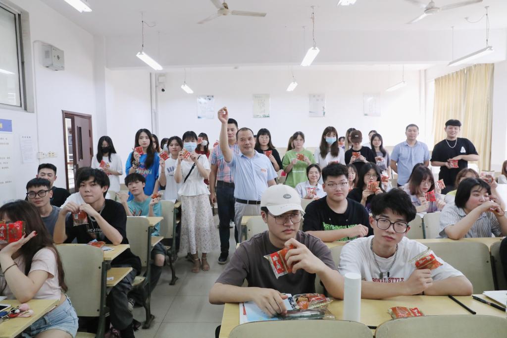 此外,在中秋节前夕,陈石俊副校长为20本商英1班送上中秋月饼,并勉励大家通过自我的努力与奋斗,圆好个人的人生梦,圆好家庭的幸福梦,圆好中华民族伟大复兴的中国梦!林素君副校长以班主任的身份,与20本汉文1班的同学们一起喜迎中秋。“祝林老师中秋节快乐!”收到月饼后的同学们齐声向林素君副校长表达感谢,并送上中秋祝福。黄辉玲副校长来到所挂点联系的19本工程造价1班,为同学们发放月饼,并鼓励大家继续努力、认真学习,做个对社会、对国家有用之人。“响应国家号召就地过节,但仍感受到家的温暖。我们一定不负老师和父母的期望,做一个有理想和抱负的大学生。”从闵桂林副校长手中接过月饼后,20本视觉传达1班的同学们兴奋地说。马勇副校长与20本汽服1班的同学们一起品月饼、话成长,深情寄语大家珍惜时间,养成良好的学习和生活习惯,以优异的成绩回报社会和家人。李玮副校长以班主任身份参加20本小学教育3班的中秋晚会,并为上学期期末成绩排名前十的同学颁发奖状和赠予书籍。周冰冰副校长来到19本机器人2班的同学们中间,将一份份中秋月饼送到的每一位同学手中,并向他们表达学校的关心和问候。程样国总督学为21专空乘1班的同学们送上可口的月饼,勉励大家刻苦奋斗,自立自强,把个人发展、家庭幸福与祖国繁荣昌盛结合起来,成为合格的新时代大学生。熊爱民顾问为20国际1班的同学们送去中秋的月饼和祝福,叮嘱大家在外要注意安全,勤向家中报平安。熊爱民顾问亲切的笑容,真诚的关怀话语,让同学们感受到家的温暖,也让他们对未来的大学生活充满信心。
