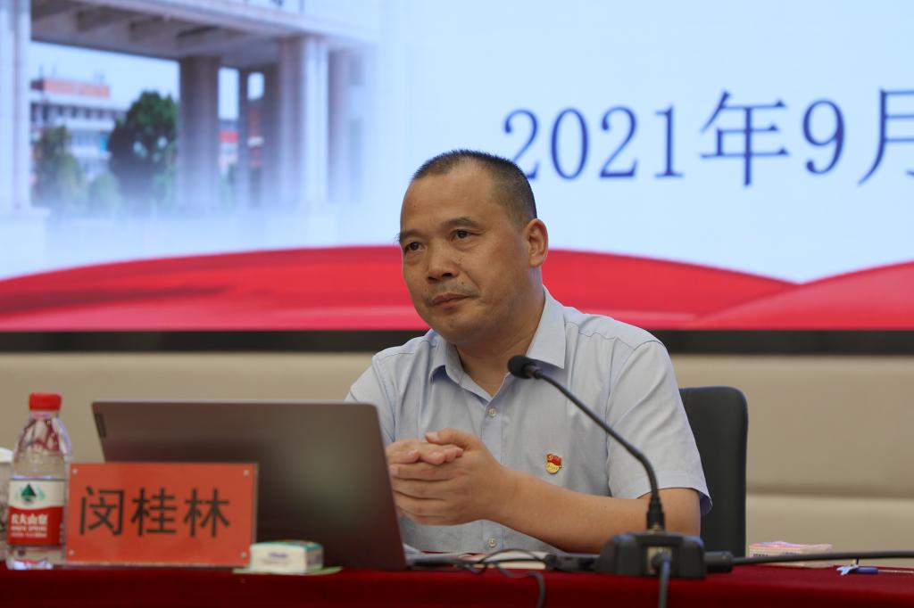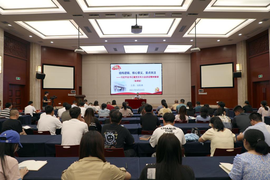 江科网讯(记者 陈佩璇)为深入学习贯彻习近平总书记在庆祝中国共产党成立100周年大会上重要讲话精神,推进党史学习教育专题宣讲走深走实,根据全省教育系统学教办部署安排,9月24日下午,党委副书记、副校长闵桂林在行政南楼第一会议室作习近平总书记“七一”重要讲话精神专题宣讲。党委副书记、副校长黄辉玲主持报告会。