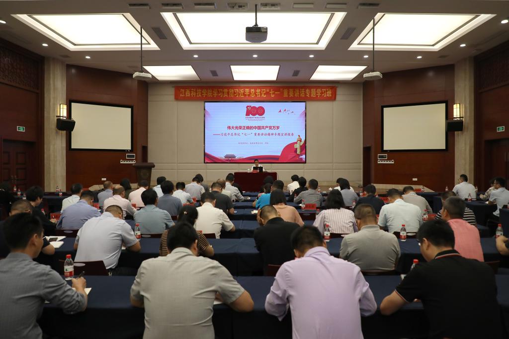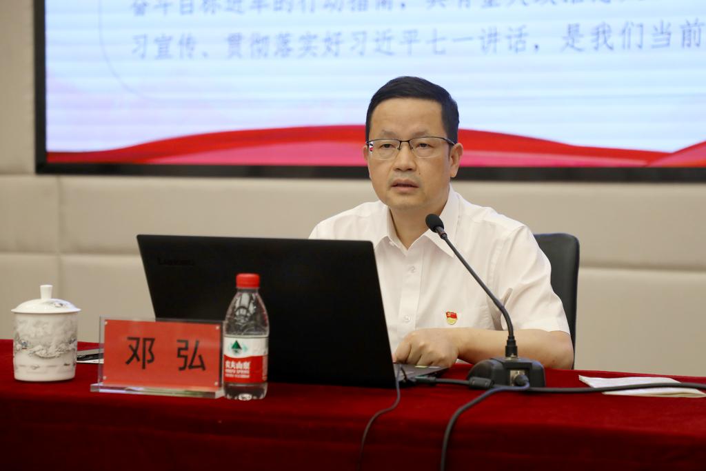 邓弘书记在报告中指出,习近平总书记“七一”重要讲话,全面回顾了100年来我们党团结带领中国人民开辟的伟大道路、创造的伟大事业、取得的伟大成就,深刻总结了伟大建党精神,系统阐述了新征程上以史为鉴、开创未来的根本要求,是中国共产党治国理政新理念新思想新战略的集大成之作,是中国共产党人高举旗帜、昂扬自信、笃定前行的政治宣言书,是弘扬真理、与时俱进、开辟马克思主义新境界的纲领性文献,是引领全党全国各族人民向第二个百年奋斗目标进军的行动指南。他要求广大党员干部、教职员工要学史明理、学史增信、学史崇德、学史增信,更加坚定自觉地坚持中国共产党的领导,增强“四个意识”、坚定“四个自信”、做到“两个维护”;更加坚定自觉地坚持做到感党恩、听党话、跟党走,不忘立德树人初心,牢记为党育人、为国育才使命;更加坚定自觉地按照习近平总书记对“做‘四有’好老师”的要求,立足本职岗位,为实现“江科梦”而努力。他希望广大青年学生更加自觉地锤炼品格修养、赓续红色血脉、肩负起历史使命,坚定理想信念,不断增强做中国人的志气、骨气、底气,用行动书写新时代的青春华章。