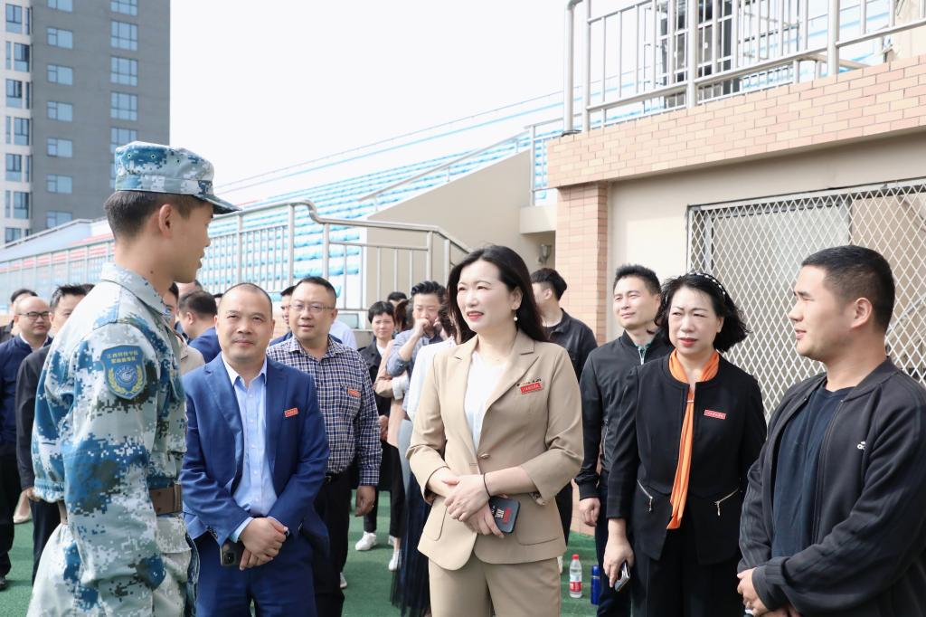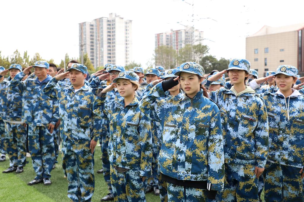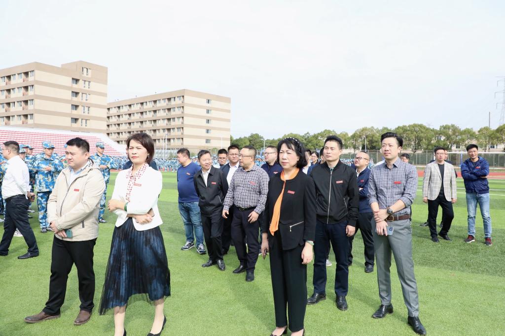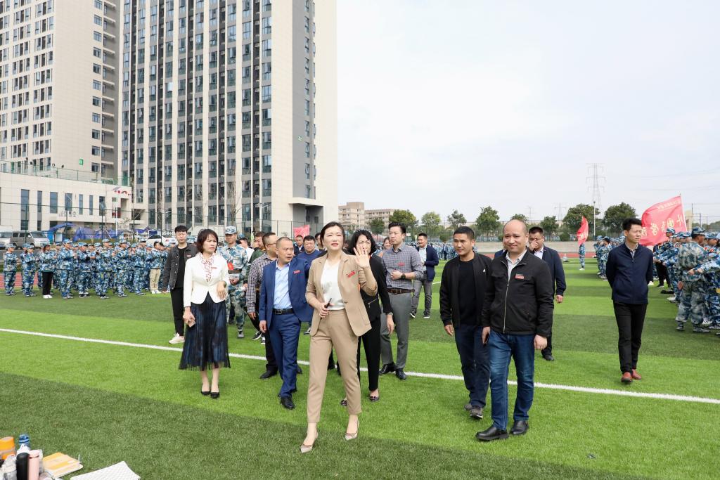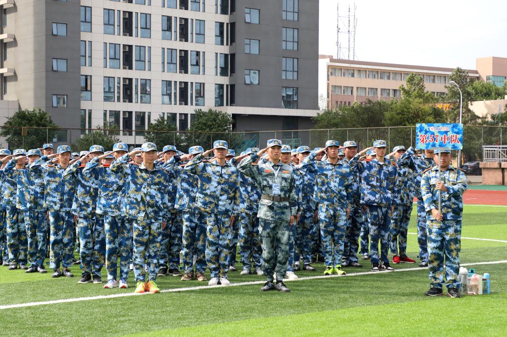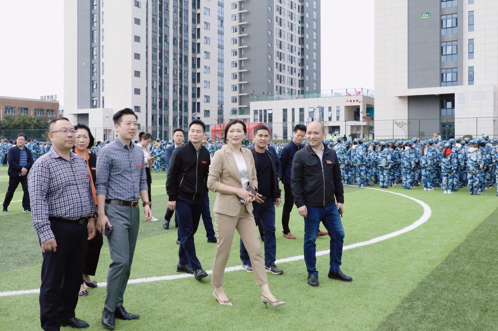 “校长好!校长好!校长好!”尽管秋风很大,带着些许寒凉,但是军训场上,同学们热情不减,精神抖擞地向校领导一行问好敬礼。“同学们辛苦了!”张海涛校长微笑地向同学们挥手致意。