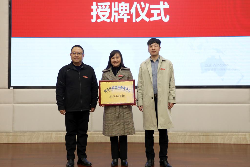 江科网讯(记者 何强江)10月21日下午,财经学院国际教育中心授牌仪式在行政南一楼第一会议室举行。副校长马勇、李玮出席仪式并为中心授牌。宣传部、学工部、招就处、开发处、教务处等职能部门负责人,财经学院国际教育中心师生代表参加仪式。仪式由财经学院院长黄爱科主持。
