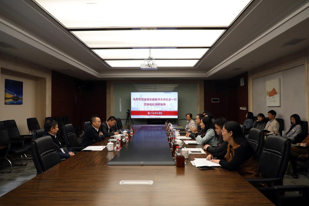江科网讯(记者 陈佩璇)10月22日上午,九三学社江西省委员会专职副主委、江西省政协常委、副秘书长肖礼庆,九三学社江西省委员会组织部部长梁磊一行莅临我校调研。学校在行政南一楼第三会议室召开座谈会,董事长于果,校党委书记邓弘,校长张海涛,副校长李玮出席。