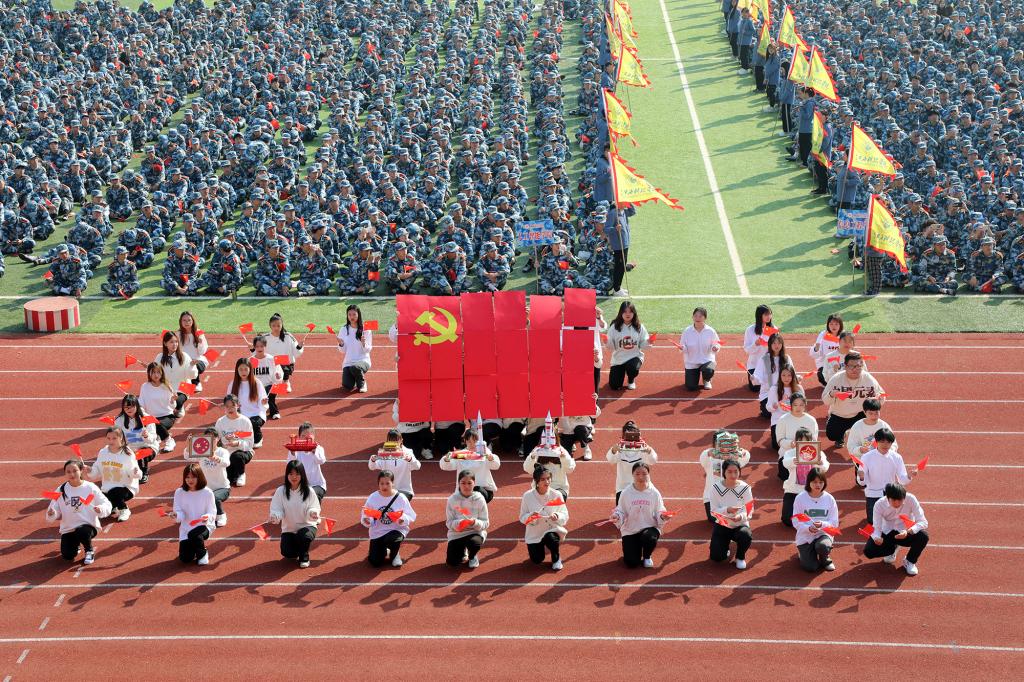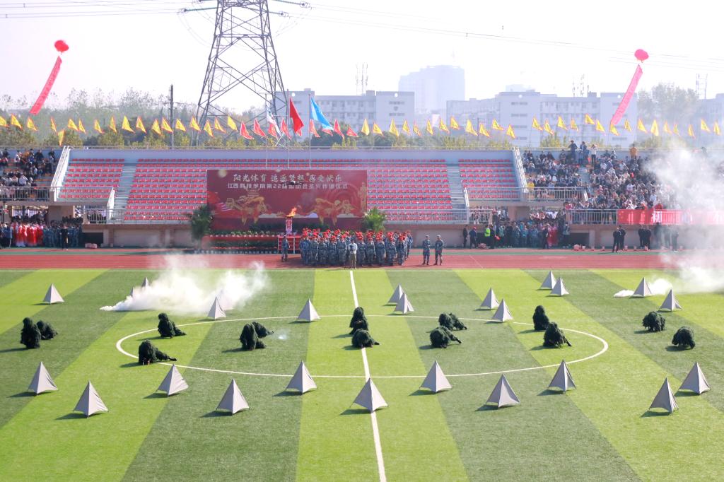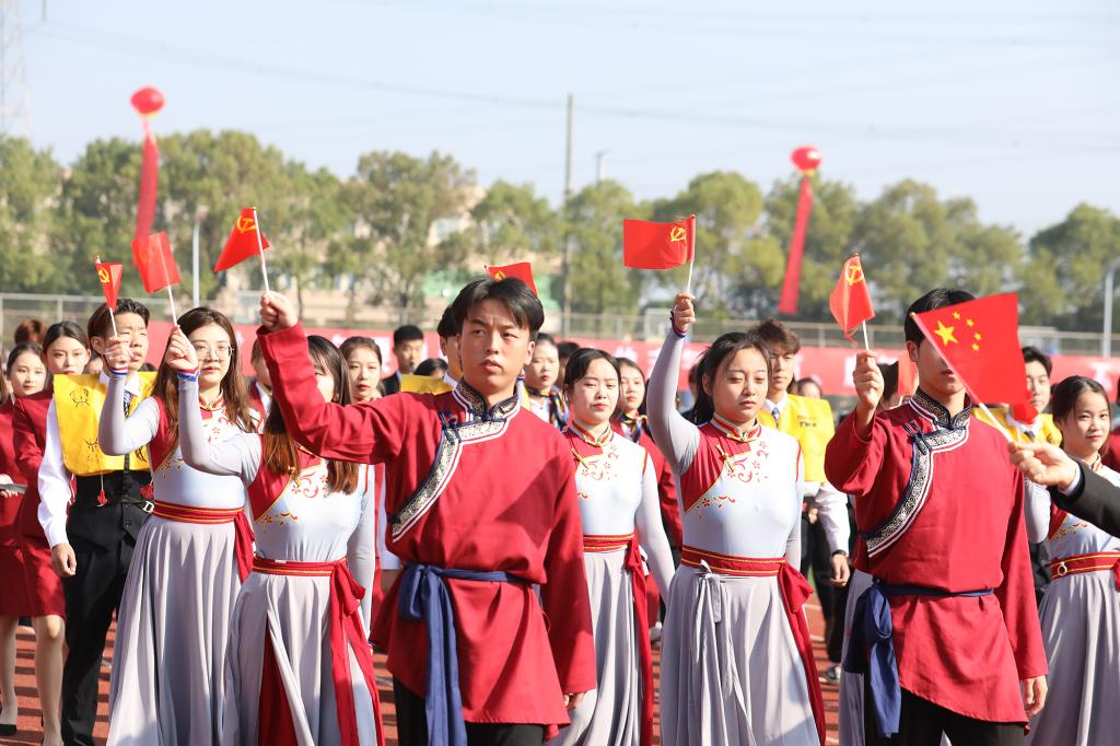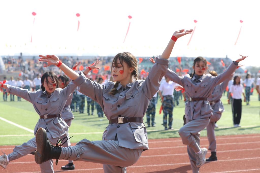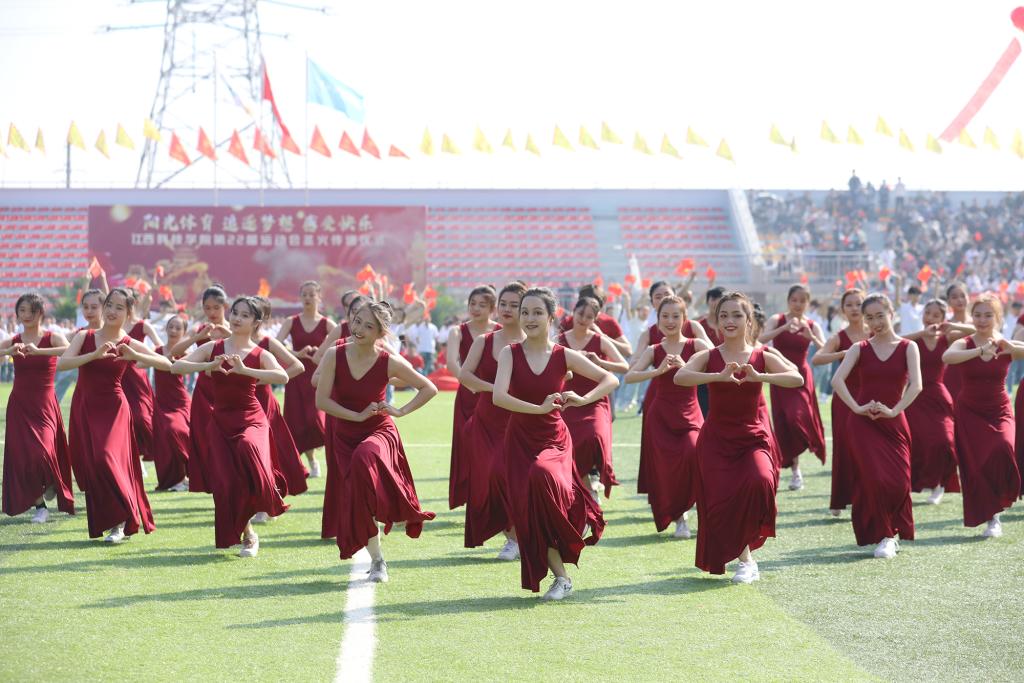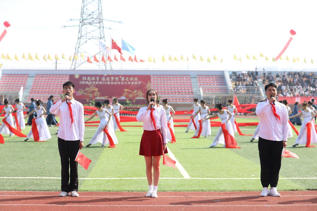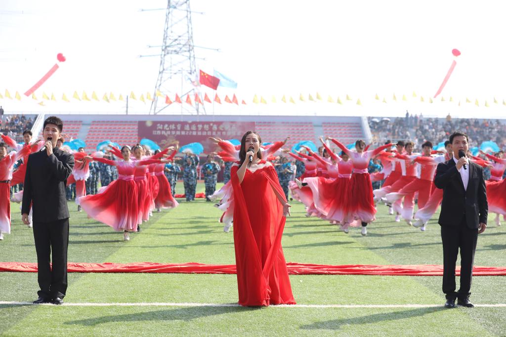 开学典礼暨第二十二届校运会开幕式上,《士兵突击+士兵小唱》《在灿烂的阳光下》《唱支山歌给党听》《风流江西》《灯火里的中国》《红星闪闪》《同心共筑中国梦》《没有共产党 就没有新中国》等节目表演精彩纷呈。