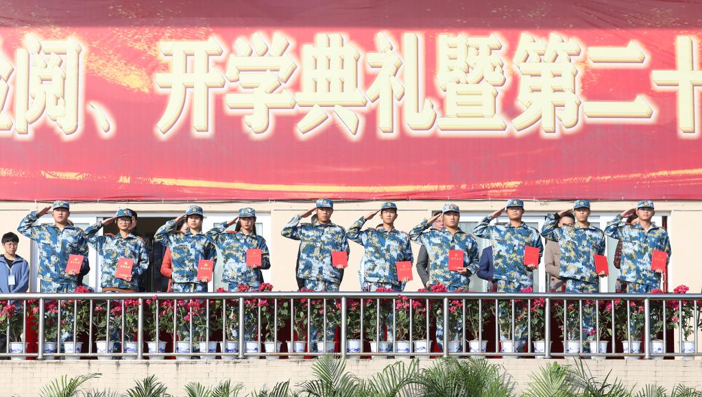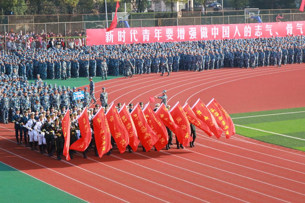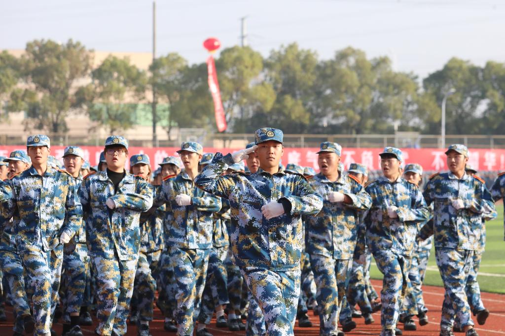 8时整,在雄壮的国歌声中,开学典礼正式拉开帷幕。于果董事长宣布“按计划执行”后,新生们以饱满的精神、挺拔的军姿、铿锵的正步和嘹亮的口号依次通过主席台接受检阅。邓弘书记授予军政教导队荣誉称号,全体军训学员向教官致谢。