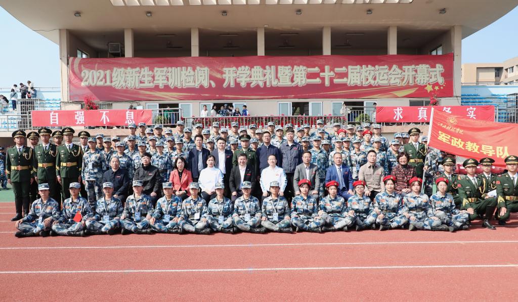 江科网讯(记者 何强江)十月的江科校园里丹桂飘香、彩旗招展,2021级新生在这收获的季节里迎来属于自己的庆典。10月25日上午,我校2021级新生军训检阅、开学典礼暨第22届运动会开幕式在奥林匹克中心隆重举行。董事长于果,校党委书记邓弘,校长张海涛,党委副书记、副校长林素君、闵桂林,副校长李玮、周冰冰,总督学程样国,顾问熊爱民出席。全校处级干部、全体辅导员及教师代表也来到现场,与全体新生共同见证这一庄严时刻。仪式由闵桂林副校长主持。