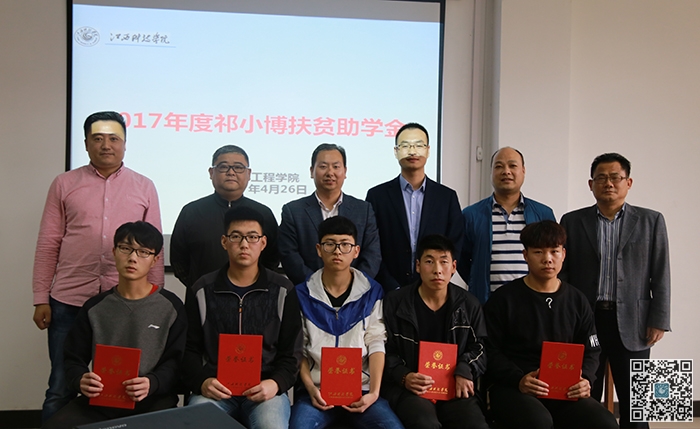 江科网讯(记者 李倩)4月26日下午,我校汽车工程学院举行2017年度祁小博扶贫助学金发放仪式。万哨凯副校长、汽车工程学院2006级校友祁小博出席。参加仪式的还有学工处长杨海涛,招就处副处长付海华,该学院副院长王华中、王永鑫,学院全体辅导员及部分学生干部代表。仪式由王永鑫主持。