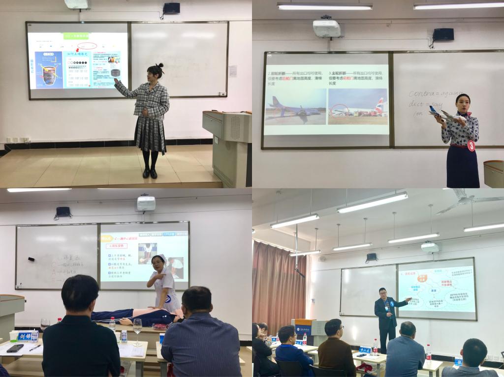 比赛过程中,我校代表队的老师拿出自己的看家本领,表现出不同的特点:李启星教师主讲课程《客舱安全管理》中的“撤离出口的划分与指示”章节,现场展示仪态大方,稳定自如,现场演示生动,一个个鲜活的案例视频牵动着现场评审和观摩教师、学生的内心;郑艾倍教师主讲课程《摄影技术与艺术》中的“构图”章节,通过缜密的逻辑,对于知识点娓娓道来,线上资源125万的课程播放量和2000多人选课人数在数字化资源展示中显得尤为突出;涂敏教师主讲课程《创新教育》中的“TRIZ教学方法”,授课深入浅出,大量的生活化案例将枯燥的知识点阐述的生动形象,非常的接地气,而且具有极强的实用性和通识性;徐萍教师主讲课程《基础护理学》中的“心肺复苏”章节,讲述流畅,层层递进,并进行现场的操作和演示,互动性效果极强。其中,李启星教师还作为参赛教师代表在闭幕式上进行发言。