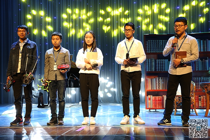 魏来和他的团队伙伴登台分享了自己参加各类科技竞赛的收获和感悟,展示了他们亲手制作的科技模型。他们在现场朗读了《钱学森传》的精彩片段,展现了当代青年学子对老一辈科学家的崇高敬意。