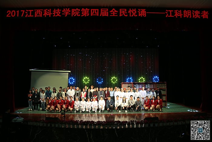 江科网讯(记者 李倩)4月21日下午,由校党委宣传部主办的2017江西科技学院第四届全民悦诵——江科朗读者活动在沙龙舞台举行。于果董事长作为江科第一位朗读者为观众现场朗读。程样国书记,林素君、黄辉玲、周万华副校长出席,各相关职能部门负责人,各学院院长、党总支书记以及师生代表现场观看。