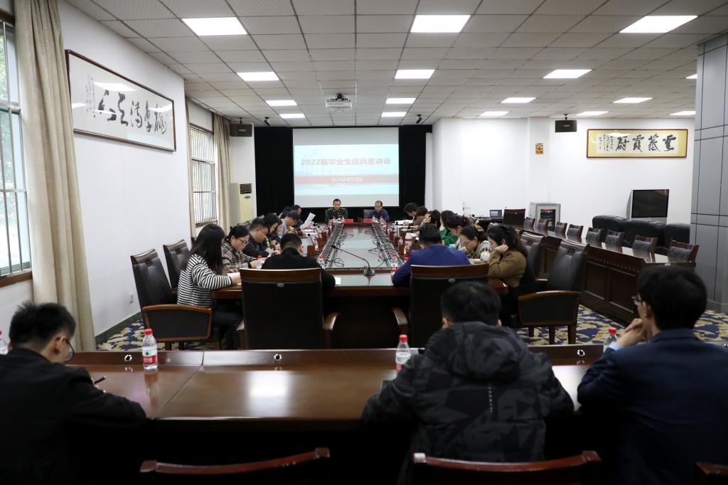 江科网讯(记者 何强江)11月16日上午,我校在行政北一楼会议室举行2022届毕业生征兵宣讲会。我校党委副书记、副校长闵桂林出席并讲话,进贤县人民武装部部长戴勇应邀解读2022届大学生征兵政策。招就处有关负责人及各学院学工秘书、2022届毕业班年级主任参加会议。