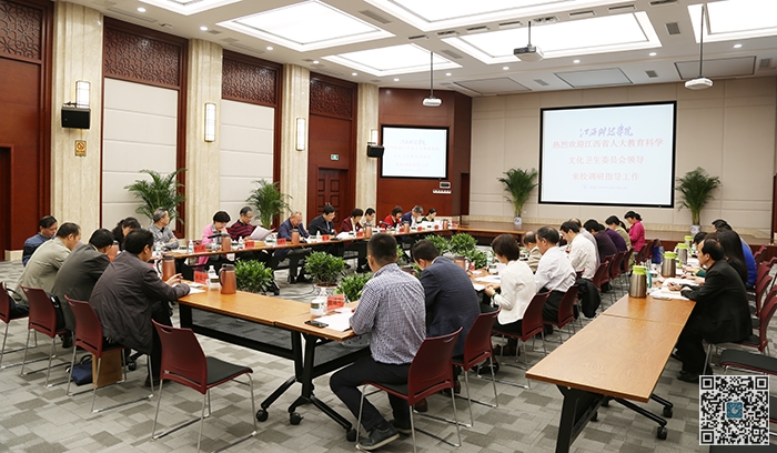 江科网讯(记者 李倩)4月17日下午,由省人大常委会委员、教育科学文化卫生委员会主任委员朱希一行十五人来校调研,受到于果董事长、程样国书记、王海校长、肖