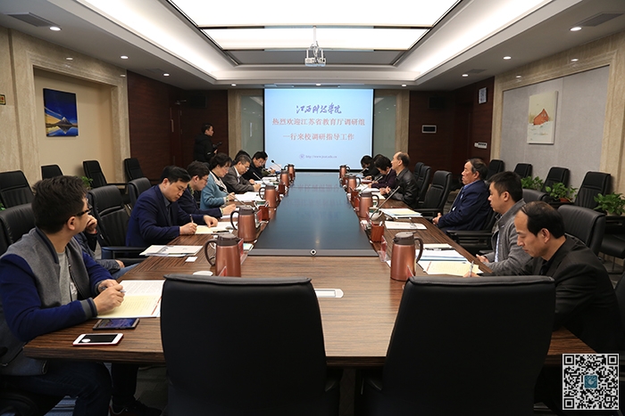 江科网讯(记者 薛敬涛)4月13日上午,江苏省教育厅发展规划处副处长徐泰来,高教处副处长徐庆,中国民办教育协会副会长、无锡太湖学院党委书记金秋萍等一行九人来我校调研,受到王海校长、肖