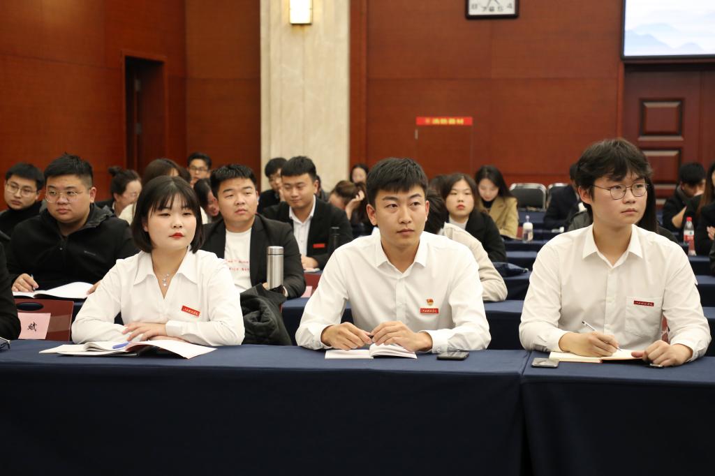 人事处处长周小丰对参训辅导员提出具体培训纪律要求,学工处处长鲁斌主持开班典礼、副处长刘磊介绍培训内容,人工智能学院辅导员高山慧作代表发言。