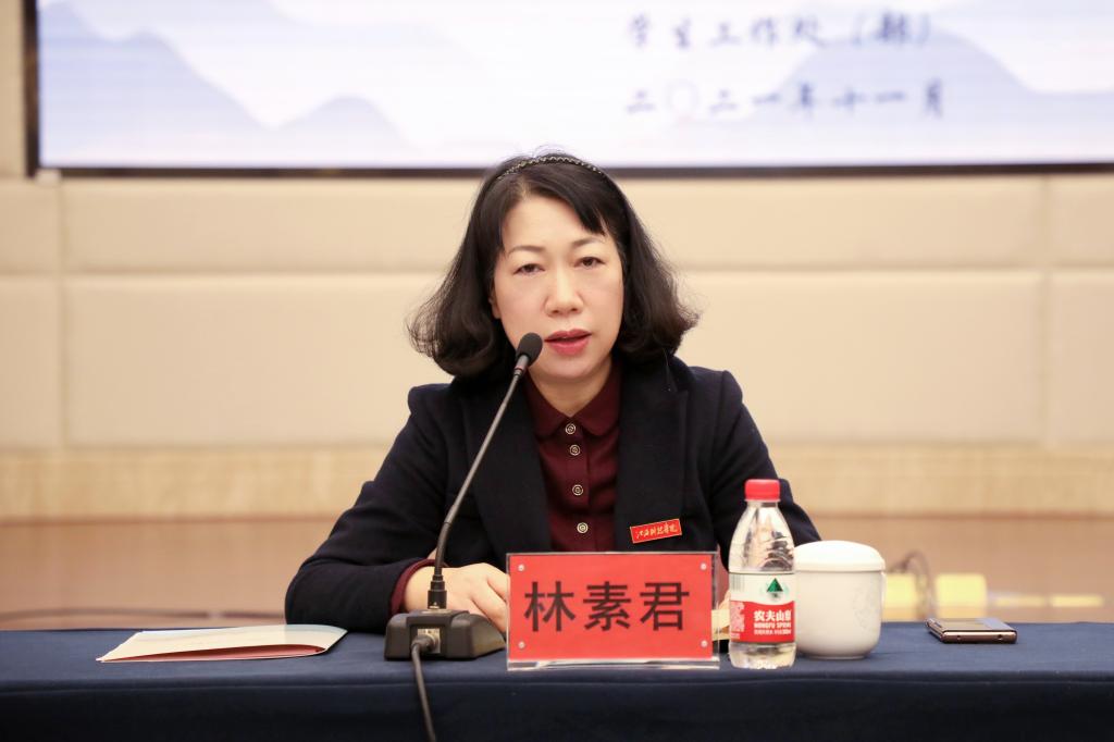 林素君副校长在讲话中对参训辅导员认真的学习态度表示赞许。她强调,辅导员既要有家国情怀、学校情怀、学生情怀,更要不忘立德树人初心和为党育人、为国育才使命。她对大家今后的辅导员工作提出三点要求,一是明确角色定位,努力做好学生的人生导师和知心朋友;二是树立角色意识,努力提升自己的综合素质和本领意识;三是抓住问题实质,引导学生思考与解决问题,不断地创新工作方法,适应新时代的发展要求,以高尚的人格感染学生。同时,她还提出三点希望,一是做充满爱心的辅导员,学博为师、德高为范,用爱创造和谐的师生关系;二是做有主人翁精神的辅导员,积极支持学校工作,关心学校建设发展,不断提升自己的学历和职称,更好实现自我价值;三是加强师德师风建设,以德立身、以德立学、以德立德,全心全意做学生的引路人,为培养德智体美劳全面发展的社会主义建设者和接班人贡献力量。