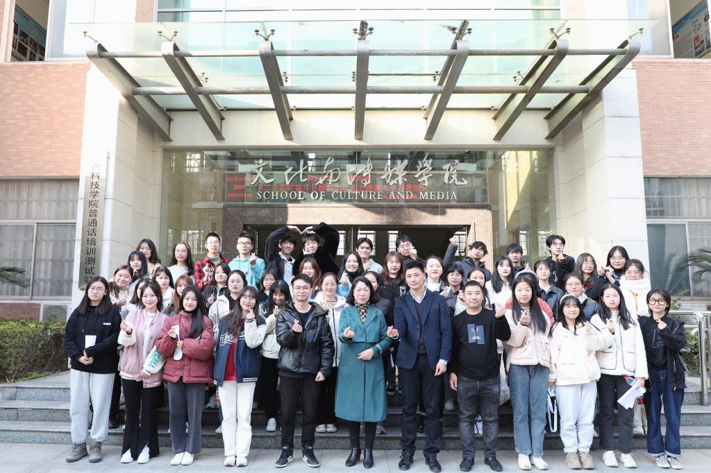 文化与传媒学院党委书记、教学副院长、团委书记等一道参加主题班会。