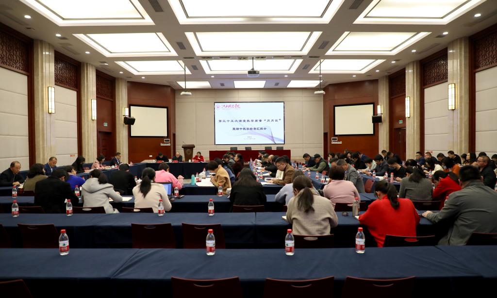 江科网讯(记者 何强江)12月7日下午,我校在行政南一楼第一会议室召开第三十五次课堂教学质量“月月谈”暨期中教学检查汇报会。校长张海涛,校党委副书记、副校长林素君、闵桂林,副校长马勇,总督学程样国出席。各教学部主任,各学院院长、教学副院长、学工副院长、教研室主任,教务处、学工处、人事处等部门负责同志,教学督导员、督导处全体成员参加会议。