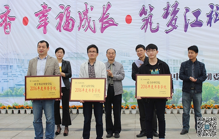 张海涛宣读了关于表彰2016年书香学院和明星读者的决定。其中文化与传媒学院、外语外贸学院、护理学院荣获“书香学院”。机械工程学院徐恩光、文化与传媒学院谢於瑾、土木工程学院王继南、外语外贸学院邬思倩、机械工程学院孟喃喃、艺术设计学院夏文聪、财经学院胡宇薇、土木工程学院丁锐、护理学院邬楚炫和财经学院谭丰年荣获“明星读者”。