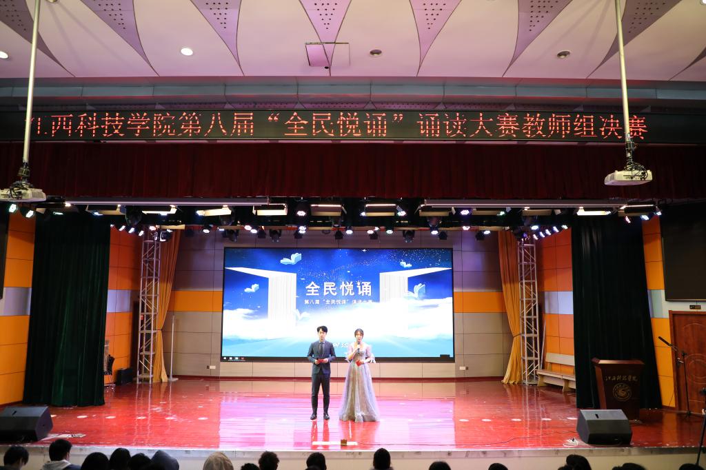 江科网讯(实习记者 姜景瀚)为庆祝中国共产党百年华诞,重温红色经典,弘扬时代主旋律,12月17日下午,由校党委宣传部主办的2021江西科技学院第八届“全民悦诵”诵读大赛教师组决赛在报告厅C厅举行。校党委副书记、副校长林素君,党委宣传部部长郭月芳,校工会办公室副主任刘国安与200余名师生代表一同到场观看比赛。