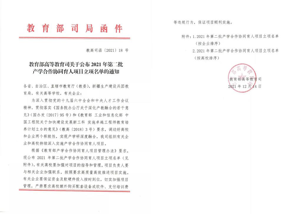 据悉,教育部产学合作协同育人项目是教育部高等教育司为深化产教融合、校企合作,组织有关企业支持高校共同开展的,通过政府搭台、企业支持、高校对接的形式促进高校教育链、人才链与产业链、创新链有机衔接,以产业和技术发展的最新需求推动高校人才培养改革。