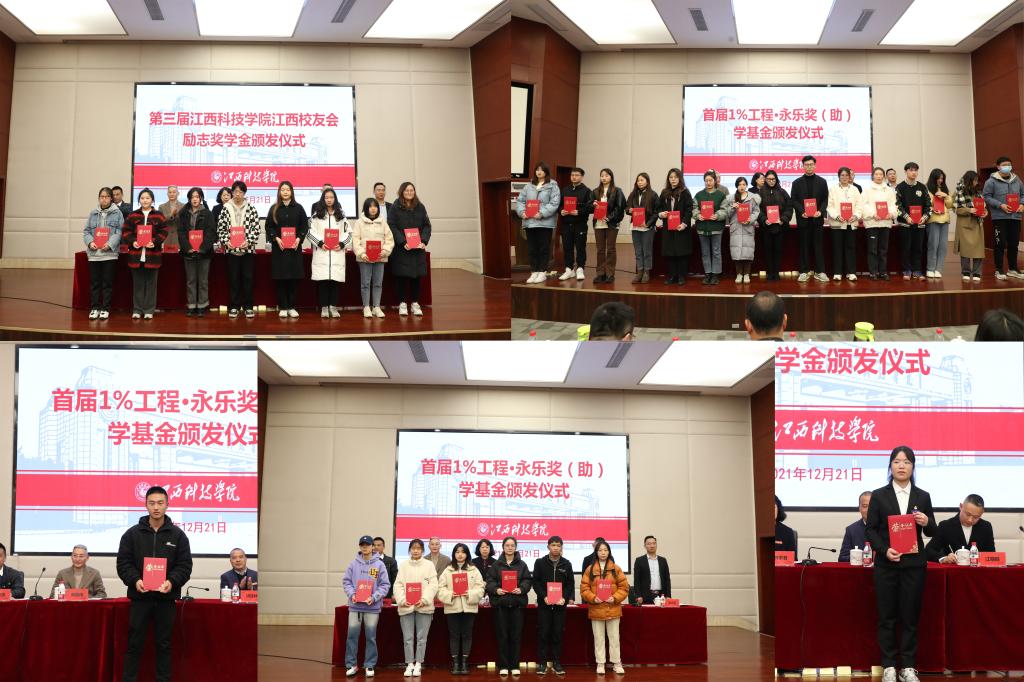江科网讯(记者 刘莹 实习记者 姜景瀚)12月21日下午,我校在行政楼南一楼第一会议室举行第三届校友会励志暨首届1%工程·永乐奖(助)学基金颁发仪式。党委副书记、副校长林素君、闵桂林,1%工程基金理事长邓凰保,民进省委会社会服务部部长尹春亮,江西校友会会长江期胜、副会长张永乐等出席仪式。仪式由招就处处长吴丽娟主持。