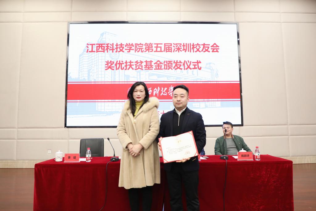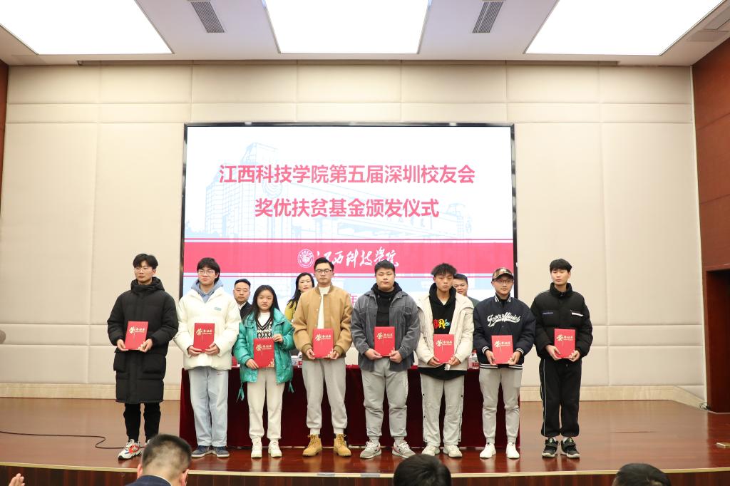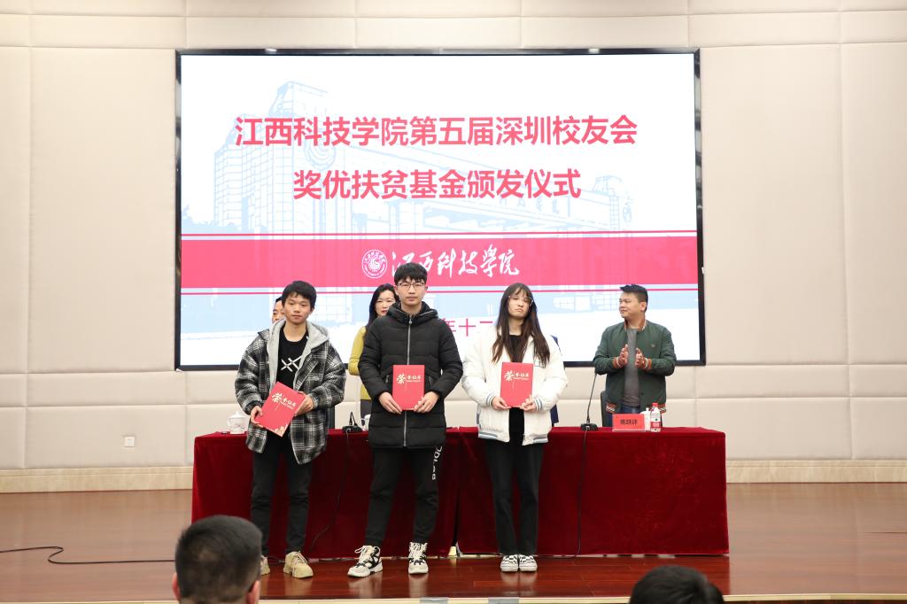 闵桂林副校长宣读“深圳校友会奖优扶贫基金”表彰决定。张海涛校长与闵桂林副校长为校友颁发荣誉证书。与会领导、嘉宾向获奖学生颁发荣誉证书。