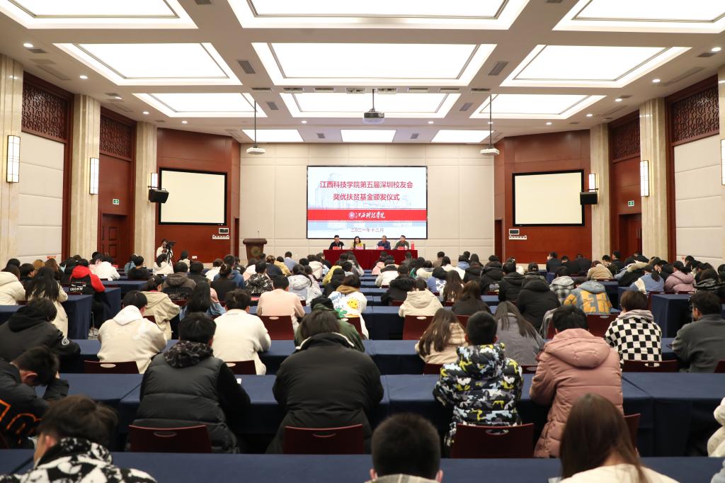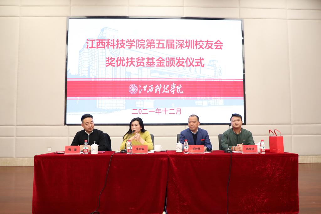 江科网讯(实习记者 姜景瀚)12月28日下午,我校在行政南楼第一会议室举行第五届深圳校友会奖优扶贫基金颁发仪式。校长张海涛,党委副书记、副校长闵桂林,深圳校友会秘书长曹建、理事陈跃评和赵旭、校友代表彭富出席。仪式由招就处处长吴丽娟主持。