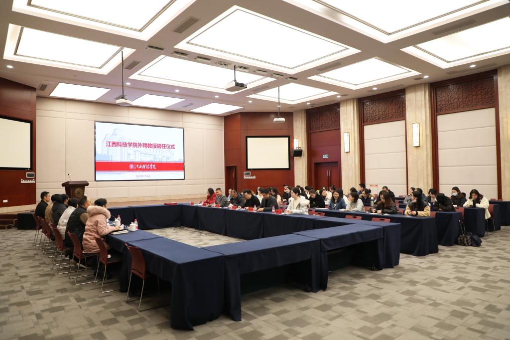 江科网讯(实习记者 姜景瀚)1月5日上午,我校在行政南一楼第一会议室举行外聘教授聘任仪式。我校副校长、教育学院院长李玮出席并为受聘教授代表颁发聘书。江科附小主管校长周明玉,教导主任万丽娜、周志强、邓翎利、王艳娇,综合学科教研组长涂波出席。我校人事处处长周小丰、教务处处长陈辉、教育学院副院长兰霞萍及教育学院专职教师参加仪式。