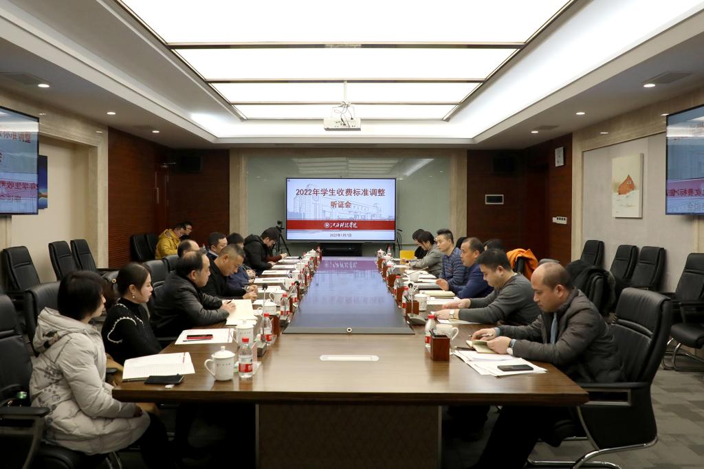 江科网讯(记者 何强江)为贯彻省教育厅、省发改委和省市监局文件精神,1月7日上午,我校举行2022年学费和住宿费标准调整听证会。江西省教育考试院副院长余芳霖,江西省政协委员、煌上煌集团食品股份有限公司董事长诸浚,南昌市青山湖区政协委员、魅丝蔻化妆品有限公司董事长江期胜,南昌大学大数据与网络安全研究院院长朱小刚,江西师范大学政法学院公共管理系主任陈谨祥,昌大高科信息产业有限公司财务主管杨小惠,我爱我家房产公司总经理吴霞,大江网记者孙以聪以及家长代表刘日金、李辉参加听证会。