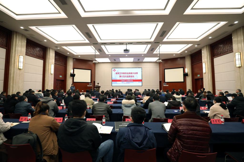 江科网讯(实习记者 姜景瀚)1月9日上午,江西省土木建筑学会教育工作委员会第十五次全体会议暨换届大会在我校行政南一楼第一会议室召开。华东交通大学校长徐长节,江西省土木建筑学会理事长许秋华,华东交通大学副校长罗文俊,江西科技学院副校长马勇,江西省土木建筑学会副理事长谭光伟,副监事长刘之建、熊进刚、李益飞,副秘书长刘献刚、戴征志等来自江西高校的100余名专家学者和代表出席会议。