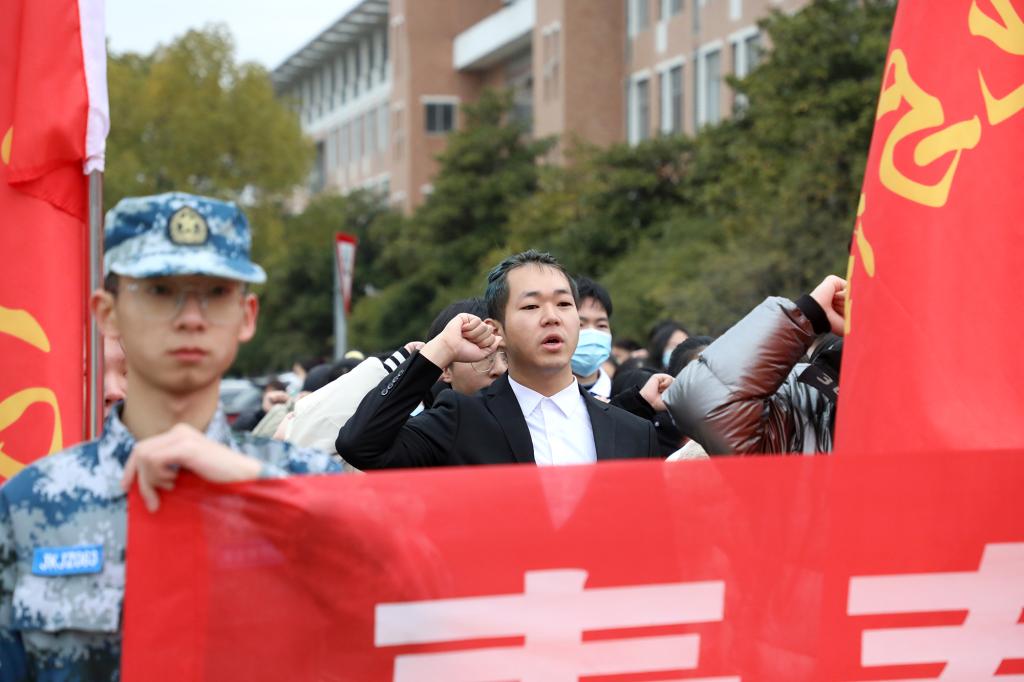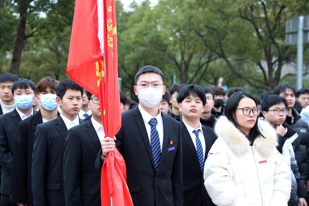 学生工作处(部)、校团委等部门负责人,各学院党委书记、学工秘书,军政教导队全体队员,校团委学生会干部代表,校学工助理中心学生干部代表,各学院学生干部代表参加升旗仪式。