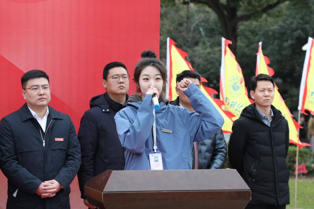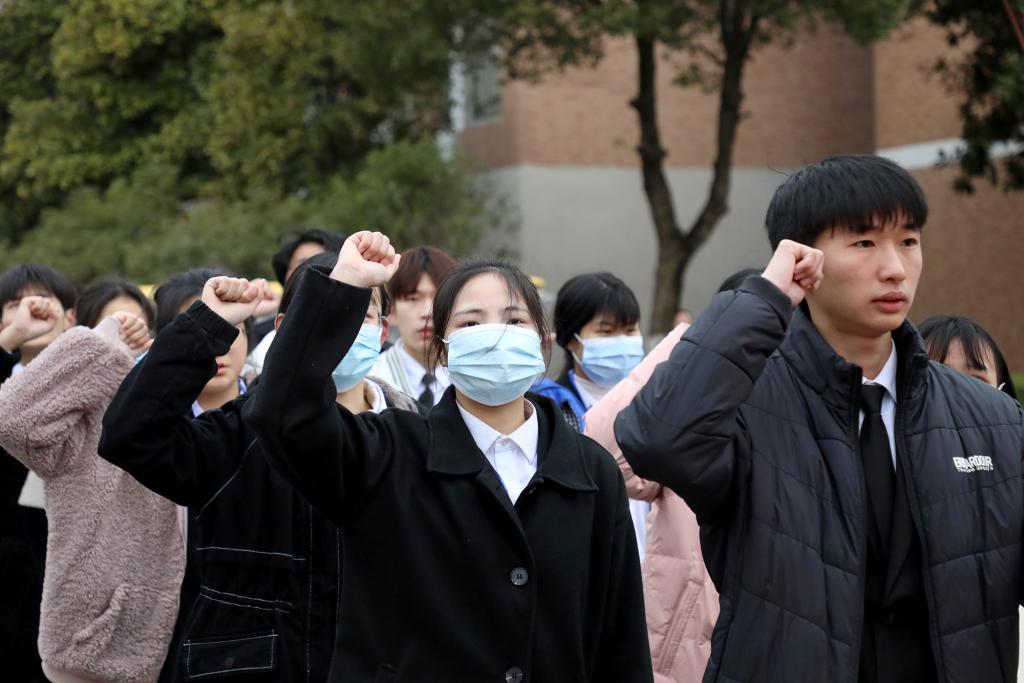 “我宣誓:恪守‘自强不息、求真务实’的校训,刻苦学习,追求真理……”来自音乐舞蹈学院2020级播音与主持艺术专业的石若琦同学带领现场学生代表宣誓。