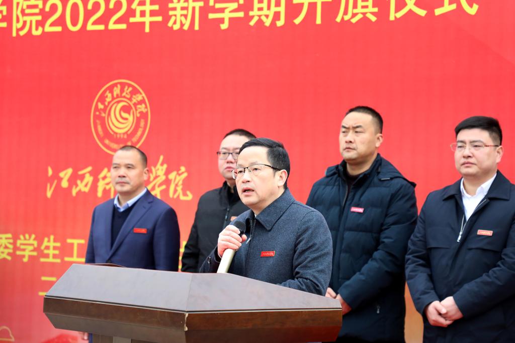 邓弘书记以“乘风破浪踏歌行,策马扬鞭向未来”为主题,从“一起向未来,以鸿鹄之志绘就青春靓丽底色”“一起向未来,将主动学习作为成长的永恒课题”“一起向未来,用担当使命作为奋进新征程的目标”三个部分,给现场师生代表上“开学第一课”。他勉励同学们要立定远大志向,把青春理想融入国家发展之中,用心系家国的赤子之心作为不变的底色,用敢闯敢拼、永不言败的斗志作为鲜明的亮色,在学习生活中不断突破自我,在时代的大流中破浪前行;要在新的一年坚持学习、独立学习、主动学习,不断增长知识、提升才干、练好本领,在激烈的竞争中独占鳌头,在火热的青春中放飞梦想,在拼搏的青春中书写华章;要牢记党和国家的嘱托,不负青春年华,勇担时代使命,让青春在为祖国、为民族、为人民的不懈奋斗中绽放绚丽之花,努力成长为爱国担当的新时代江科好青年。最后,他希望大家在新的一年里更加坚定地做到:爱国、励志、求真、力行,以虎虎生威的雄风、生龙活虎的干劲、气吞万里如虎的精神,书写全新篇章,一起美好向未来。