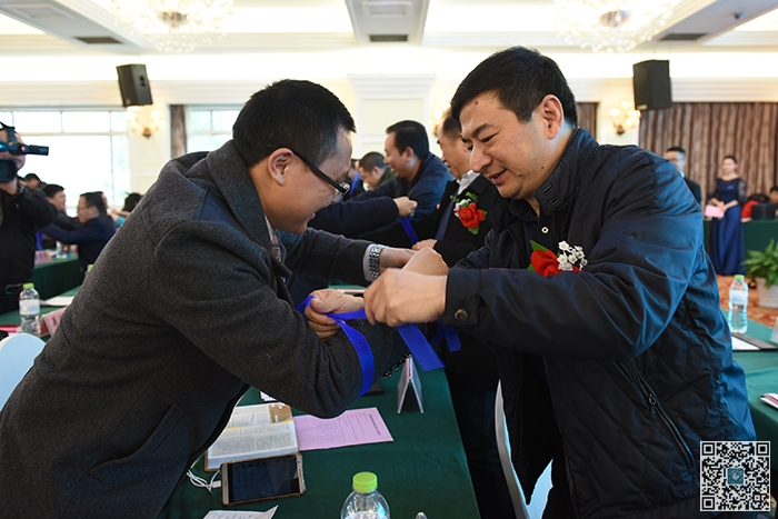 天南地北江科人,海内海外一家亲,在杭州校友会筹备组组长詹英英的倡议下,会场的每一位校友为彼此系上了一条连接着江科学子心灵,承载着江科人对校友、对母校深深祝愿的蓝丝带。