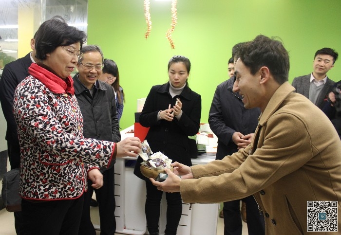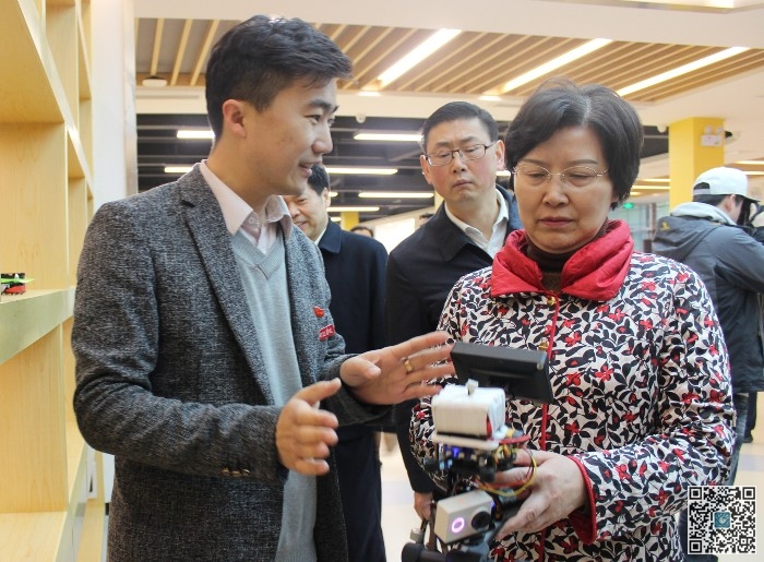 在校党委机关八支部指导下建立了党小组的红绿蓝众创空间,黄小华饶有兴致地参观了创业团队产品展示区,体验了由我校学生创业团队开发的产品,观看了我校大学生创新创业成果展,与在孵学生创业团队亲切交流。黄小华在了解了我校优秀大学生创业典型米拉迪力为推动民族团结所做的努力之后指出,米拉迪力对民族的交融、交流、交往发挥了巨大作用。她希望米拉迪力坚持自己的民族梦,带动在校的新疆籍大学生一起把这个梦做好、做圆满。