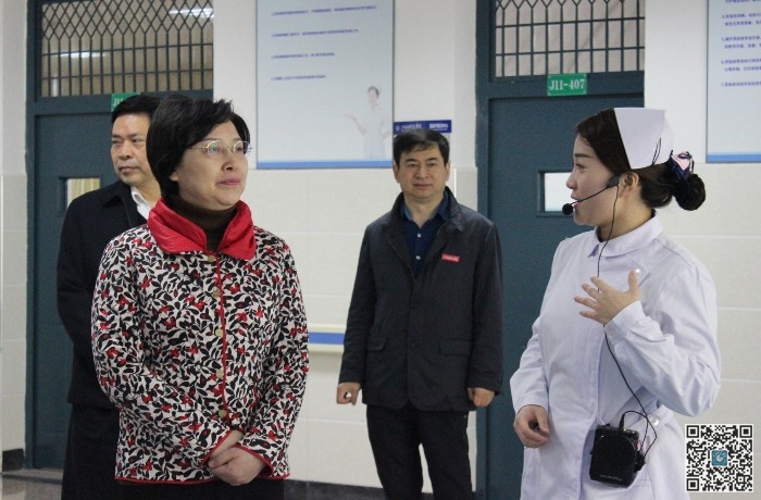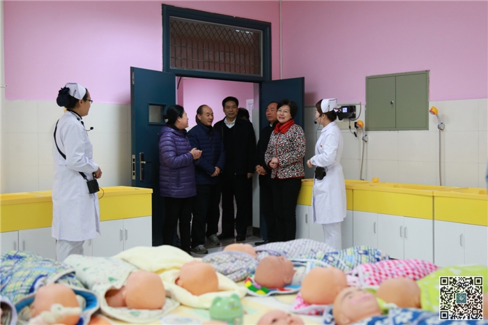 在我校基层党建示范点护理学院党总支,黄小华一行参观了学院实训室,询问了学院基本情况、党员学生数量以及护理专业毕业生的就业情况。在学院党员活动室,黄小华翻阅了品德培养工作计划与进度安排手册、三会一课会议记录本、党员事迹材料、党建工作小结等。程样国详细介绍了我校学生品德培养工作开展的基本情况以及取得的成效。黄小华对学院党建思想政治工作给予肯定,希望学院继续开展特色活动,推动党建工作蓬勃开展,培养出更多优秀的医护人员。