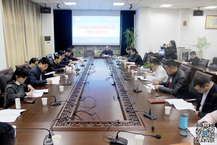 江科网讯 (记者 李玉云)3月10日下午,2017年大学生创新创业工作领导小组工作会议在行政楼北一楼会议室召开。 王海校长、万哨凯副校长出席会议。会议由校团委书记(双创办主任)于海明主持。