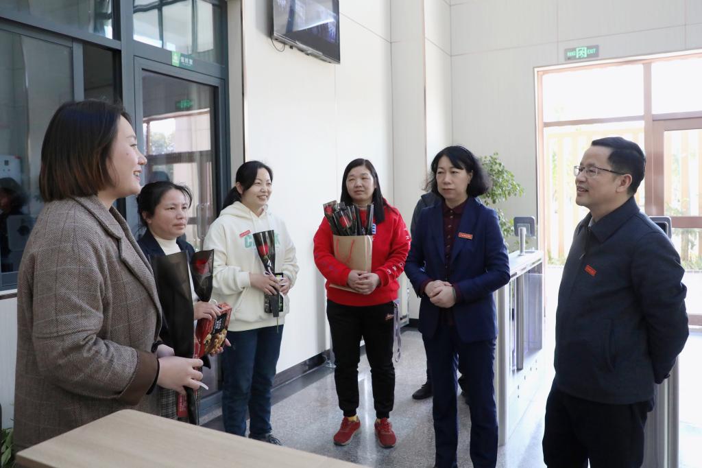 江科网讯(记者 何强江 刘莹)春上柳梢好风景,春花烂漫慰人心。3月8日下午,校党委书记邓弘,副校长、工会主席林素君带领工会办公室副主任刘国安和女工委员肖爱武,走访慰问“三八”节坚守在一线的女教职工代表,为她们送上鲜花和饼干,并通过她们向全校女教职工致以节日的祝贺和诚挚的慰问。
