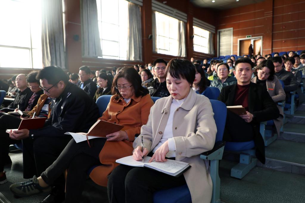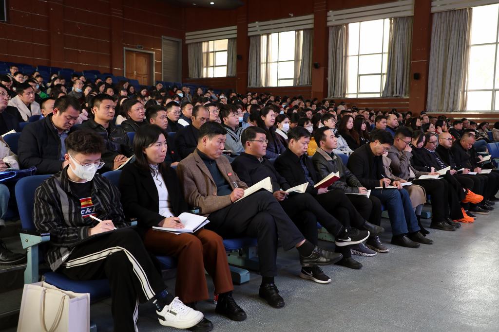 全校中层干部,硕士研究生教职工参加会议。会上,与会老师结合实际情况就攻读博士面临的主要困难和想法进行了提问,于果董事长在现场均作了耐心解答。
