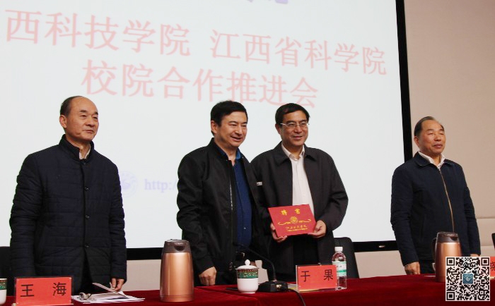 江科网讯(记者 李倩)3月9日下午,我校与江西省科学院合作推进会在行政楼南一楼第一会议室举行。出席会议的有省科学院院长王晓鸿,于果董事长、程样国书记、王海校长、肖