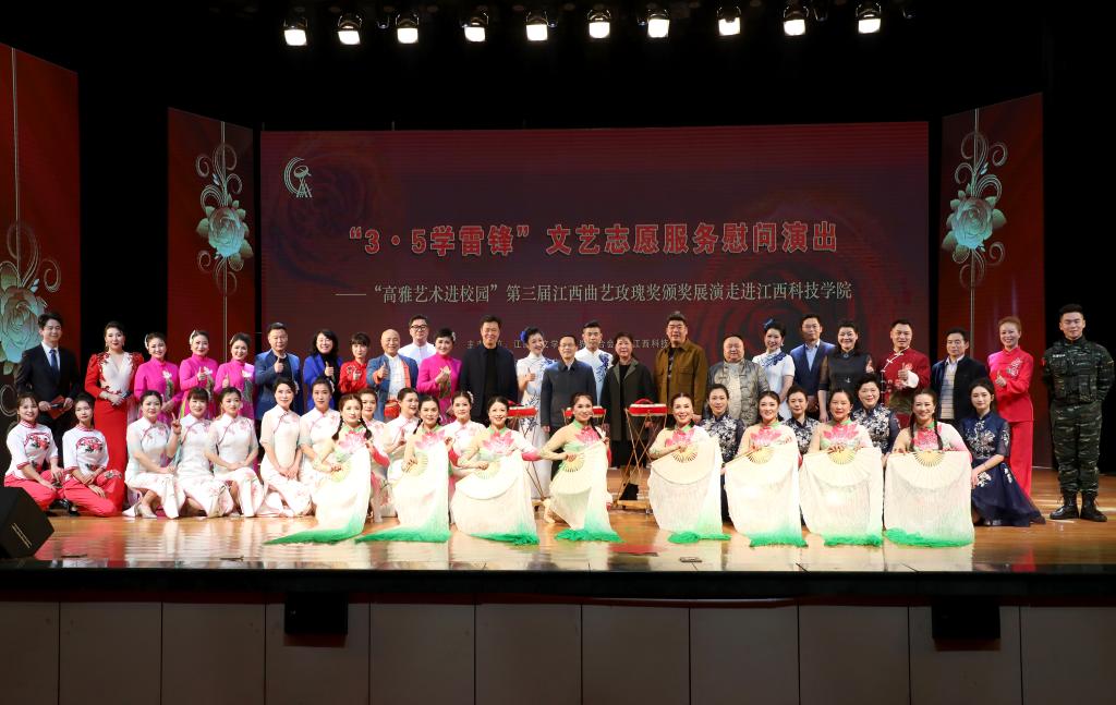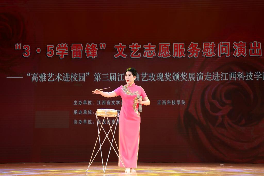 江科网讯(记者 何强江)为深入学习贯彻习近平总书记在中国文联十一大、中国作协十大开幕式上的重要讲话精神,弘扬社会主义核心价值观和中华优秀传统文化,推动我省曲艺事业的繁荣发展,让富有江西特色的优秀曲艺艺术走进高校,丰富师生精神文化生活,以实际行动传承雷锋精神,在全国第59个“3.5学雷锋纪念日”来临之际,由江西省文联、江西科技学院主办,江西省曲艺家协会承办的“3.5学雷锋”文艺志愿服务演出——“高雅艺术进校园”第三届江西曲艺玫瑰奖展演走进江西科技学院活动拉开序幕。