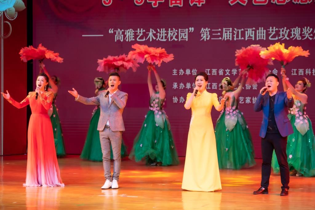 活动当晚,省文联党组成员、主席叶青,江西科技学院党委书记邓弘,省文联党组成员、副主席张越,省文联兼职副主席李媛媛,省曲协主席李小英,省曲协六届主席团成员等领导与学校一千余名师生共同观看展演。出席活动的领导们为获得第三届江西曲艺玫瑰的获奖者颁发获奖证书。