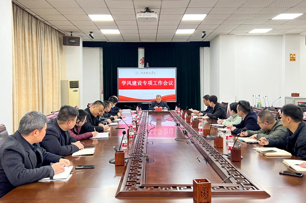 江科网讯(通讯员 王哲瑞)2月24日上午,我校在行政北一楼会议室召开新学期学风建设专项工作会议。校党委副书记、副校长闵桂林出席并主持会议。学工处(部)、校团委等部门负责人,各学院学工副院长、专职党委副书记、学工秘书,宿舍管理区主任、公寓辅导员与会。