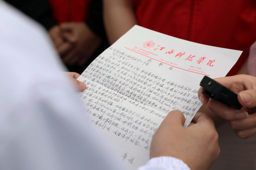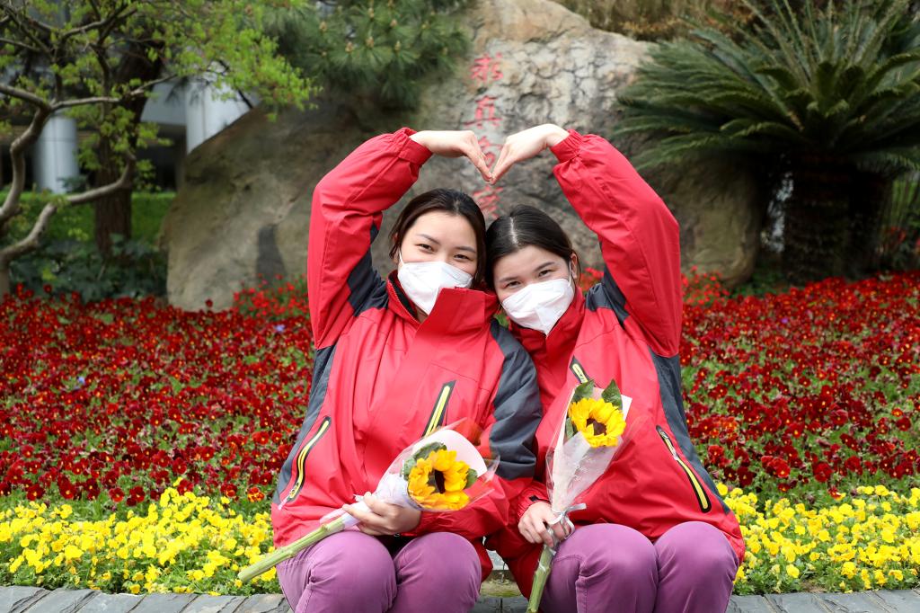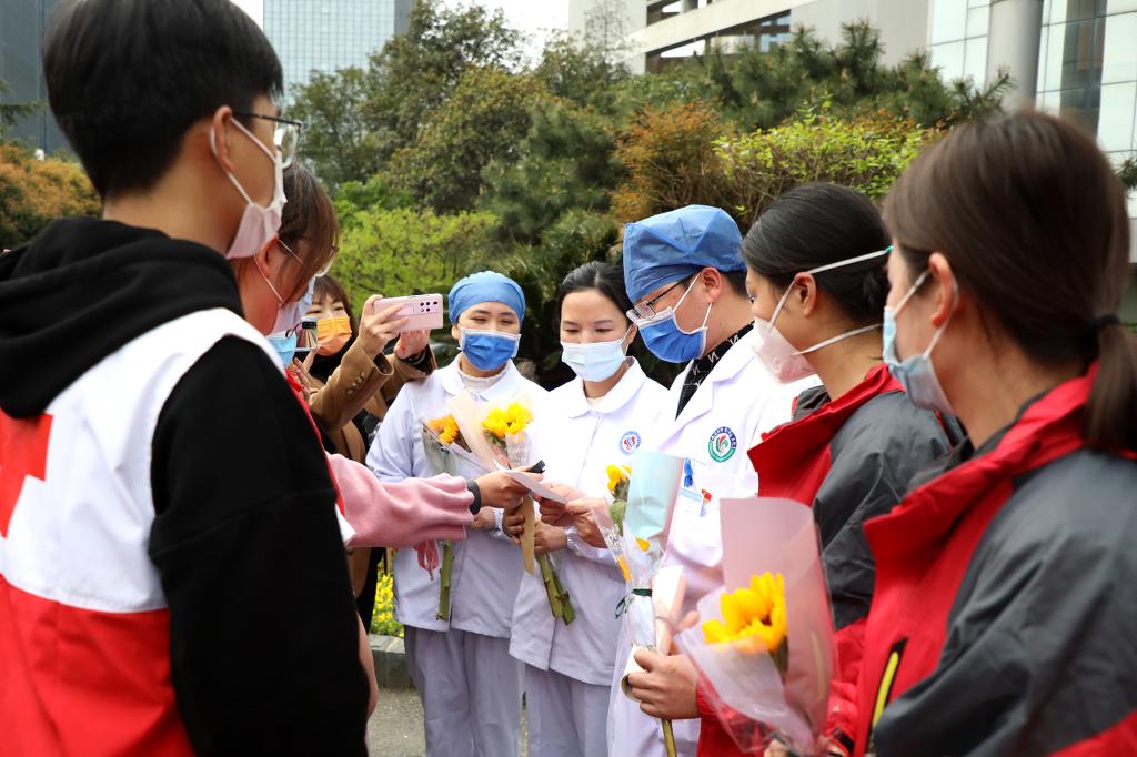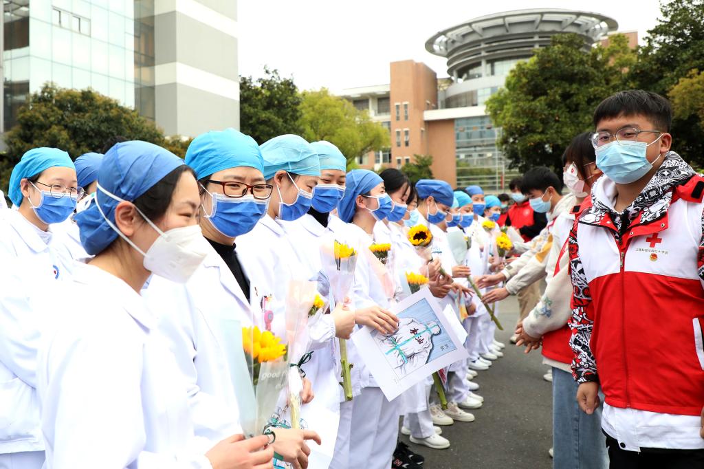 “感谢你们这几天来为我们的付出,我们期待这个春天‘疫’过天晴后与你们再次见面,谢谢你们!”志愿者章程同学在送上自己的感谢信时如是说到。医护人员纷纷表示这是他们应该做的,“我们国家有你们这样的年轻人加入防疫工作队伍,相信我们一定能够战胜这次疫情。江科很美,江科的人更美,我们一定会来这里,登上蓝天阁一览如画江科。”