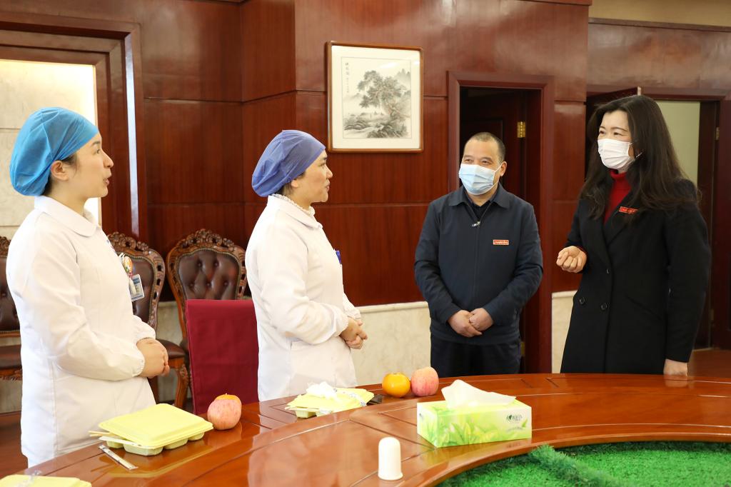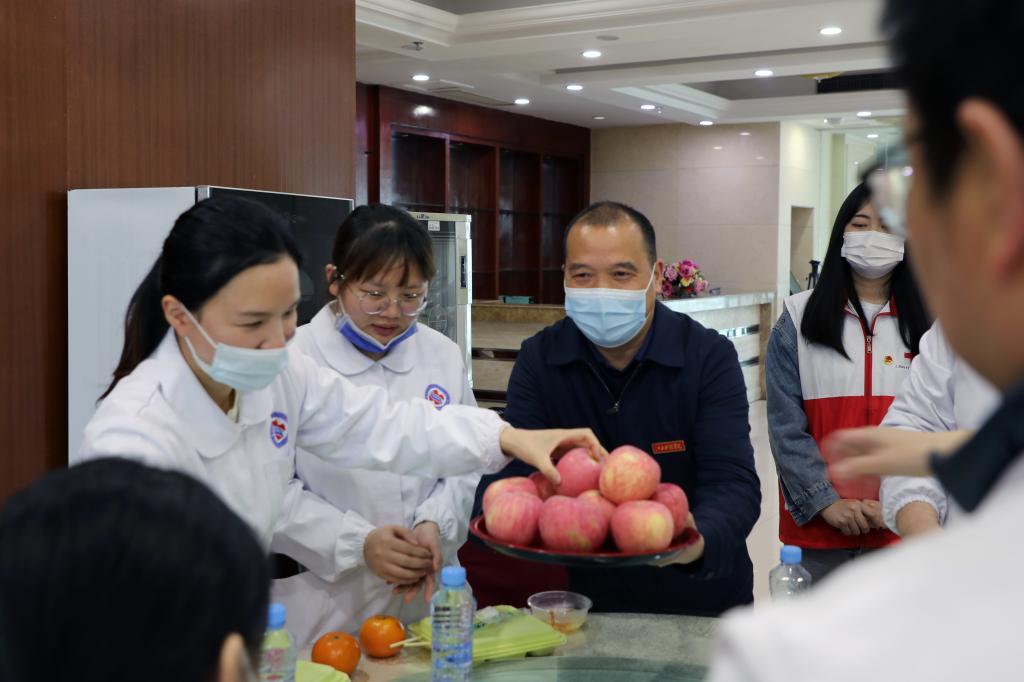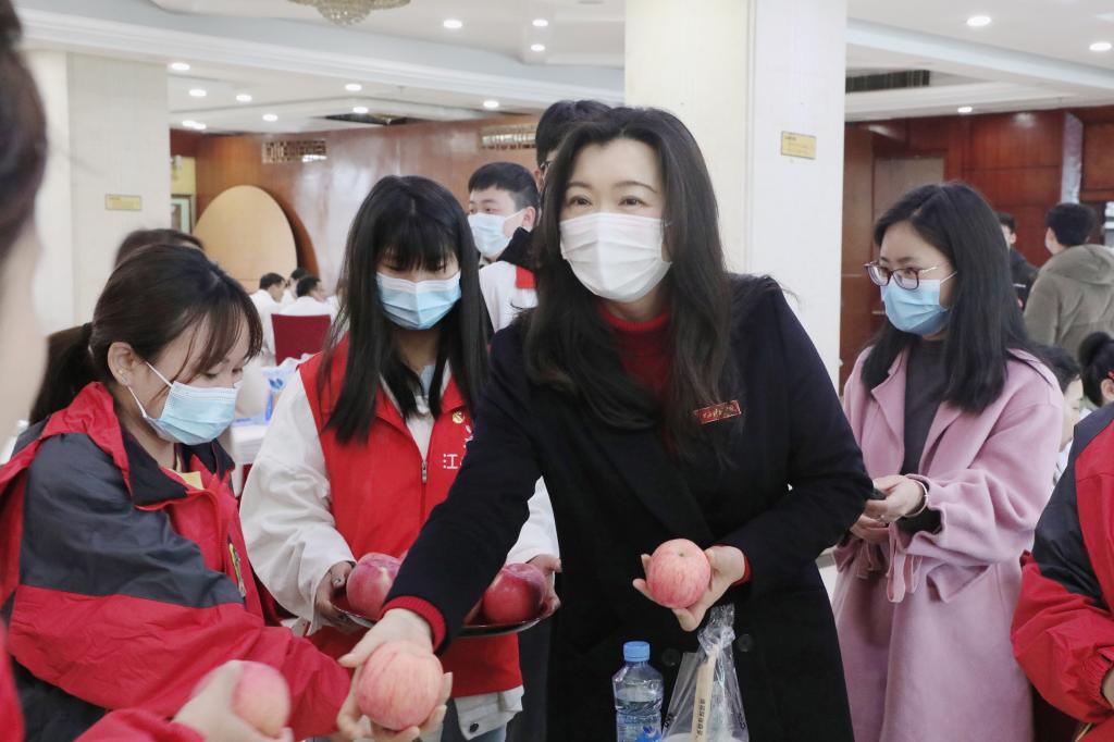 10时45分,一束束向日葵、一封封感谢信、一张张图画……江科师生花式表白、感恩每位逆光而来的医护人员。期间,校长张海涛,校党委副书记、副校长闵桂林为每位医护人员送上苹果、桔子,向大家的辛苦表示感谢。