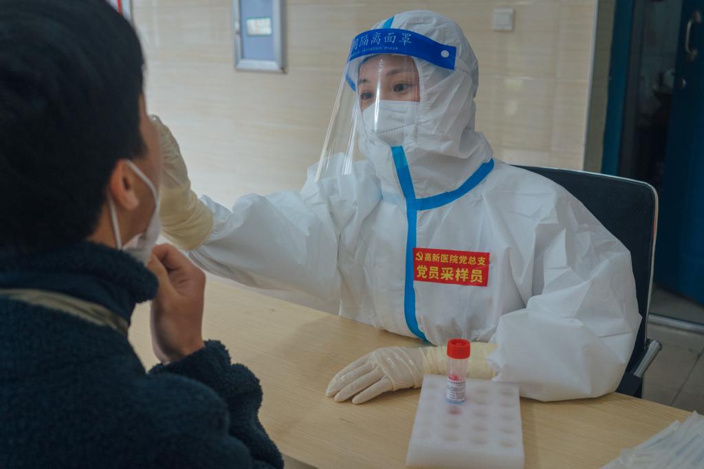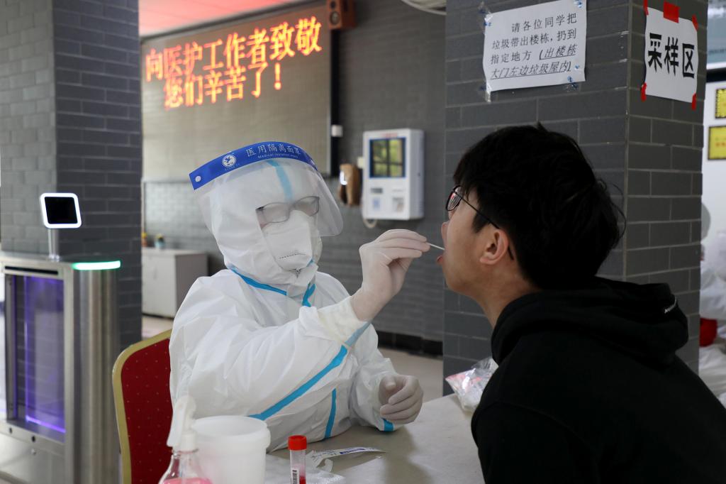 根据安排,医护人员来到各核酸检测楼栋。7时25分,他们全副武装,手拿咽拭子棉签,说“啊~”“对,保持”“好了”,争分夺秒为师生进行核酸采样。核酸样本采集工作看似简单,完成一次全程也不到一分钟,实际非常辛苦。每名医护人员平均需要检测近400个样本,这就意味着,每人需要抬手近400次。完成一次采集,需要用洗手液消毒一次,“七步洗手法”必须重复近400次。在医护人员、志愿者、工作人员的通力配合下,依旧用时不到3小时便完成近3万人的核酸检测工作。