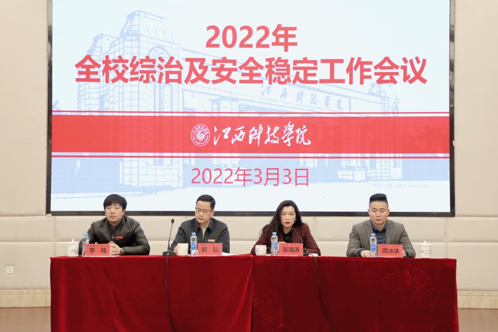 江科网讯(记者 何强江)3月3日上午,我校召开2022年全校综治及安全稳定工作会议,总结经验,表彰先进,明晰任务,确保校园和谐稳定。校党委书记出席并讲话,校长张海涛主持会议,副校长周冰冰、李玮出席会议。